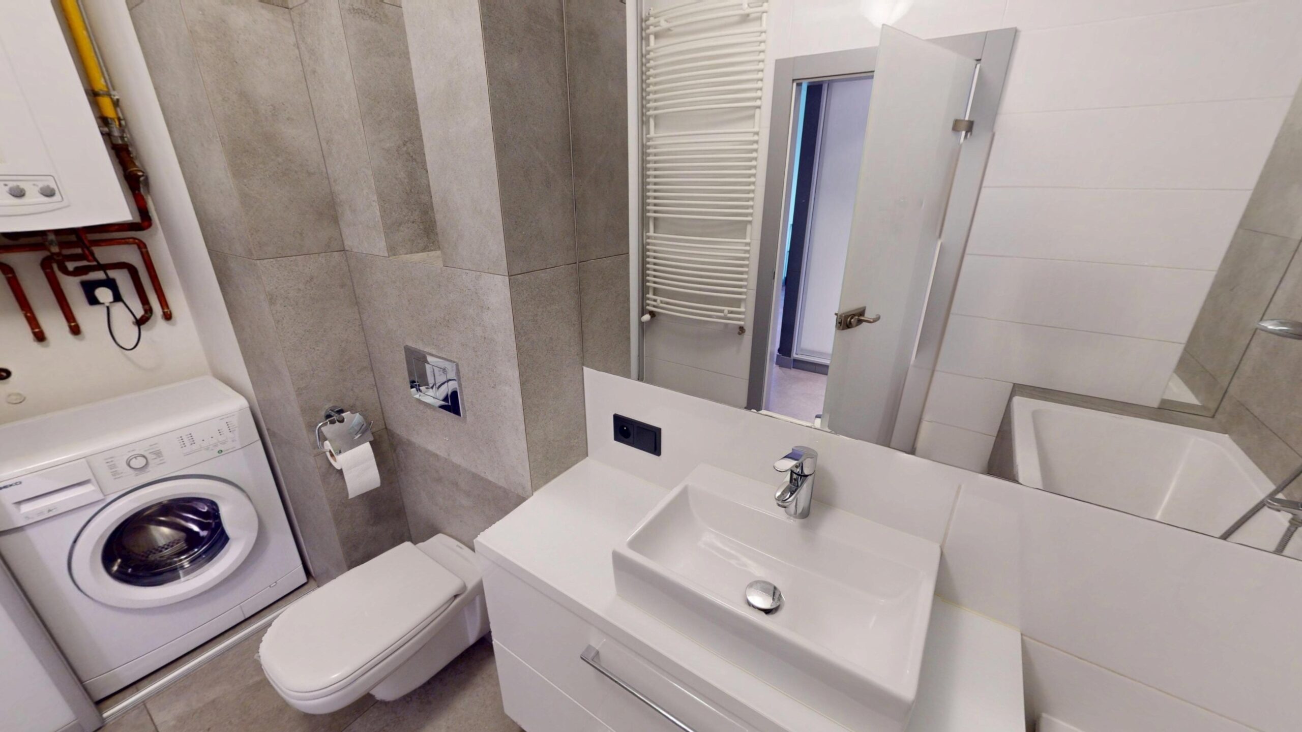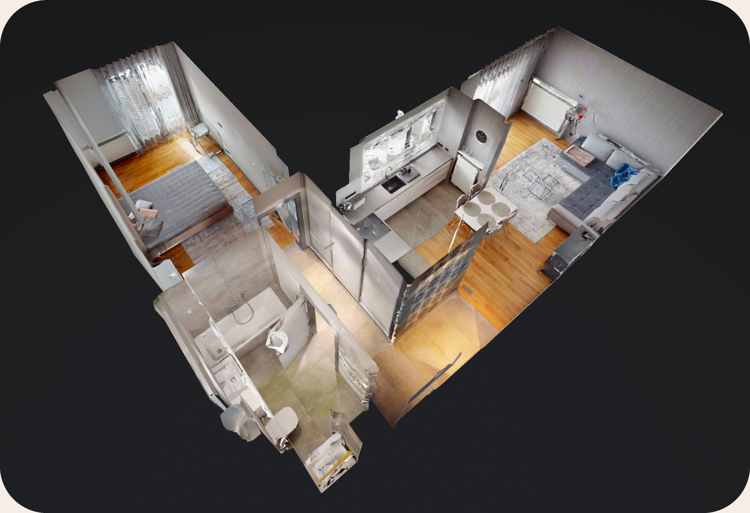 Po zakończeniu prac na miejscu tworzony jest kompletny wirtualny spacer, który zawiera możliwość swobodnego poruszania się po wnętrzu, oglądania szczegółów oraz wykonywania dokładnych pomiarów powierzchni w m². Gotowy spacer może zostać łatwo osadzony na stronie internetowej, udostępniony klientom lub wykorzystany w materiałach promocyjnych.